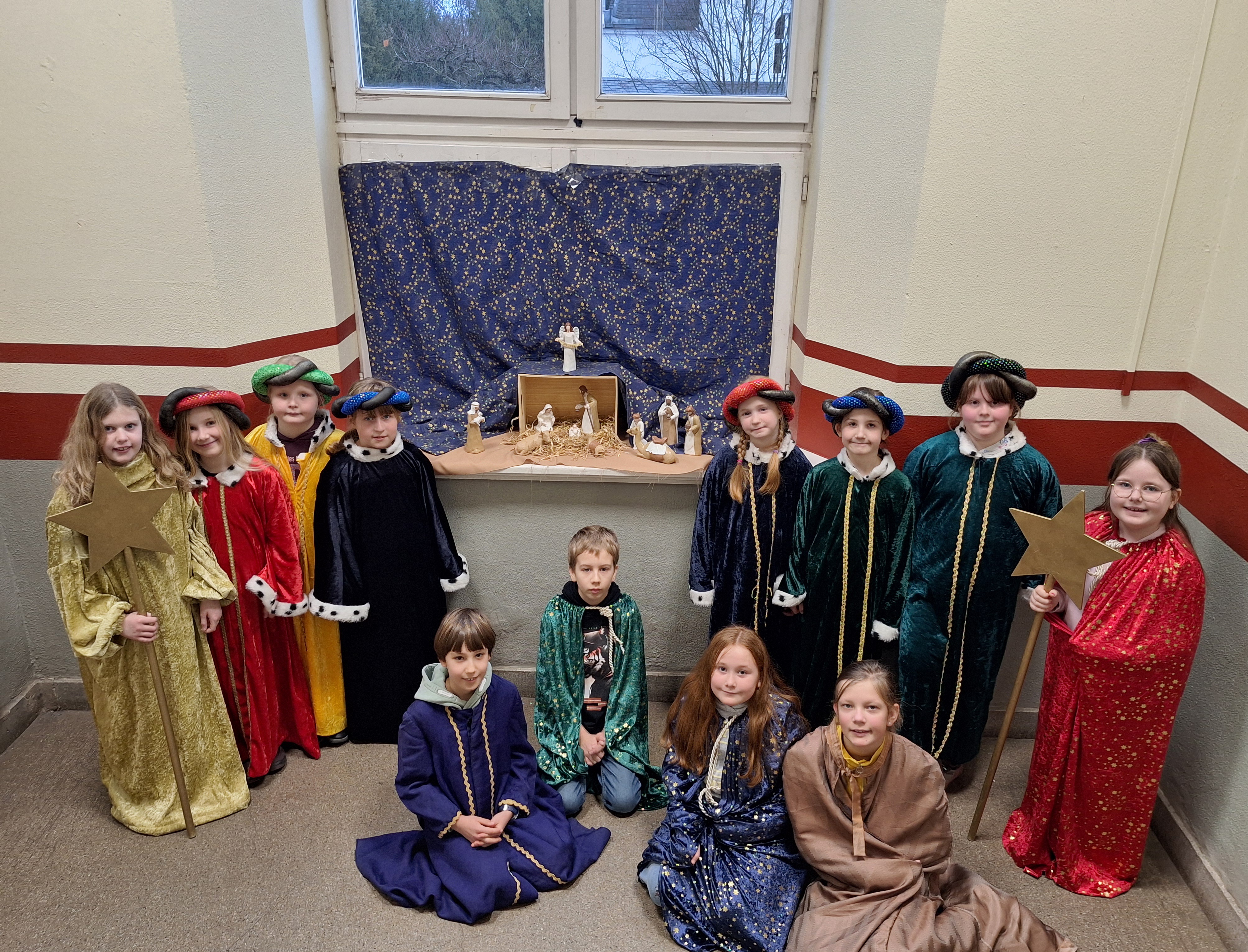 Auch in diesem Jahr gingen die Kinder der Theater-AG als Sternsinger verkleidet durch die Klassen und brachten den Segen Gottes für das neue Jahr.