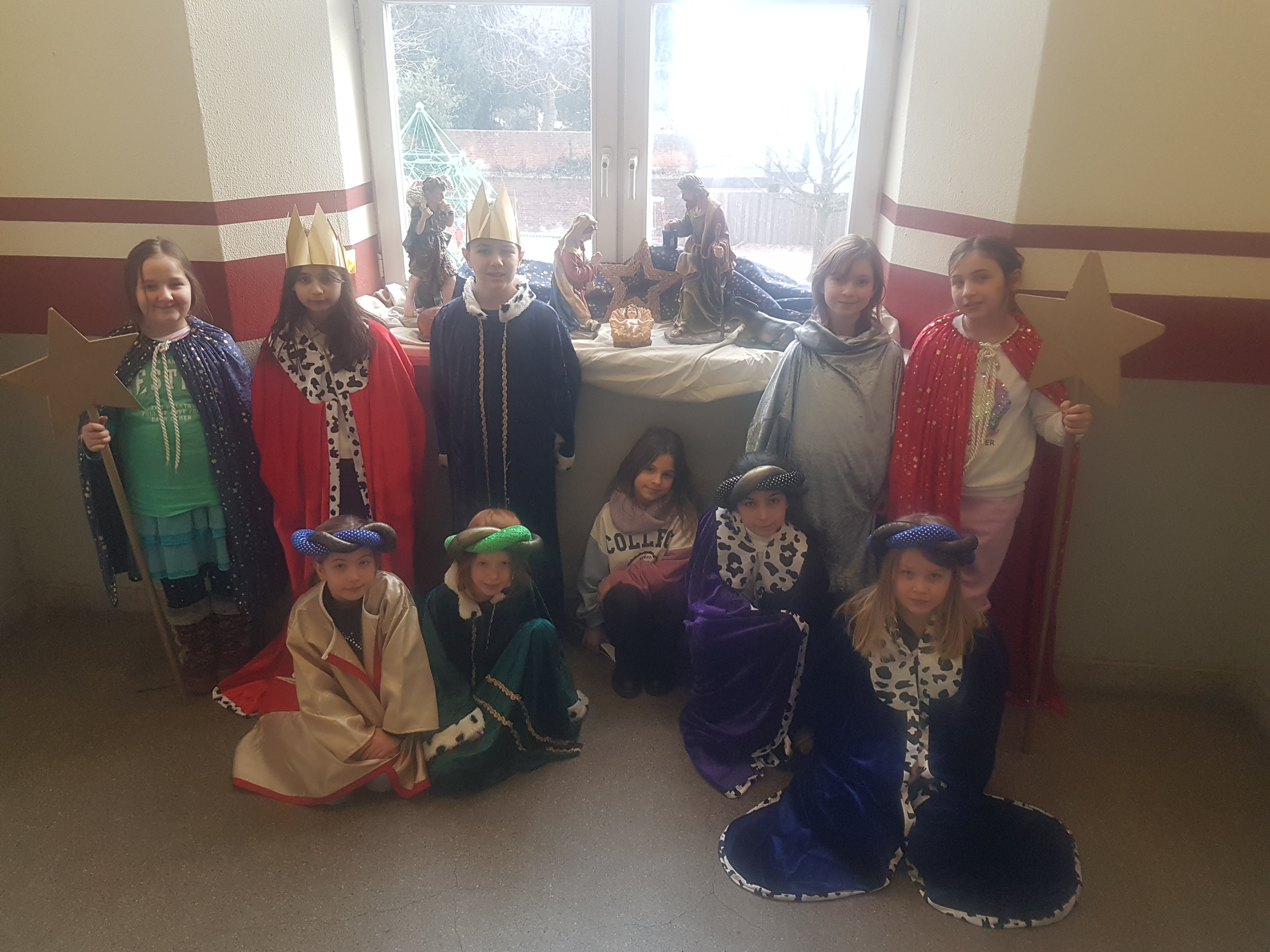 Wie jedes Jahr besuchten auch diesmal wieder die Sternsinger als die Heiligen Drei Könige verkleidet alle Klassen und brachten den Segen Gottes für das neue Jahr.